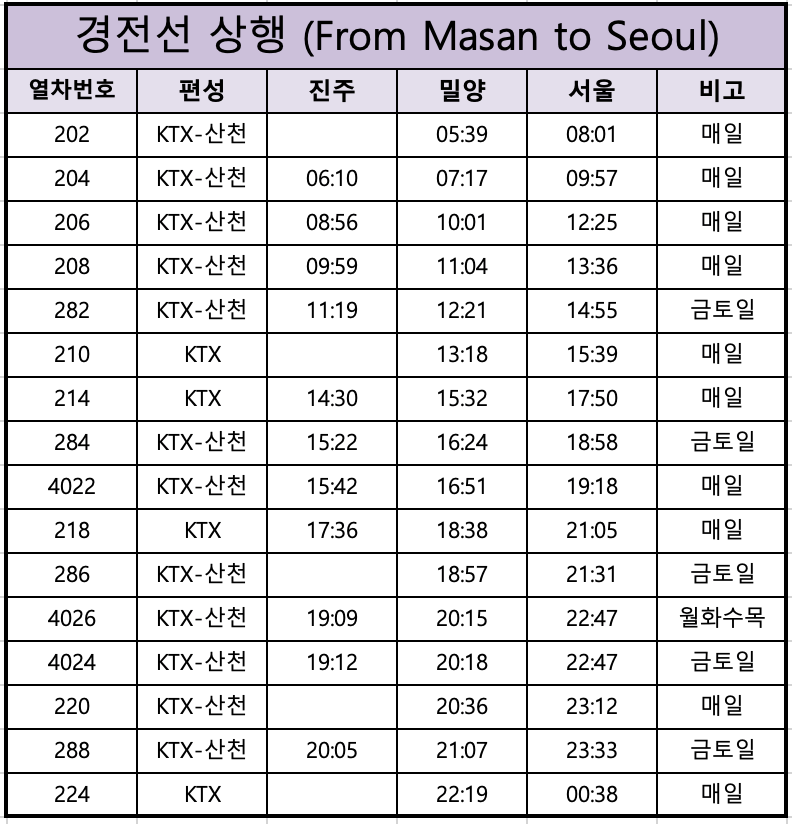 - KTX 시간표