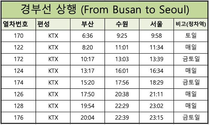 여행이나 이동 계획 시에는 반드시 코레일 공식 플랫폼 또는 코레일톡 앱에서 실시간 열차 시간표 및 정차 여부, 요금 정보를 확인하신 뒤 예약하시는 것이 좋습니다.