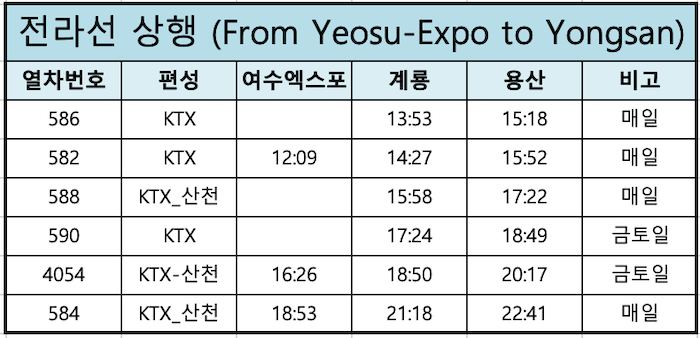 전라선 KTX 여수엑스포→용산 상행 시간표